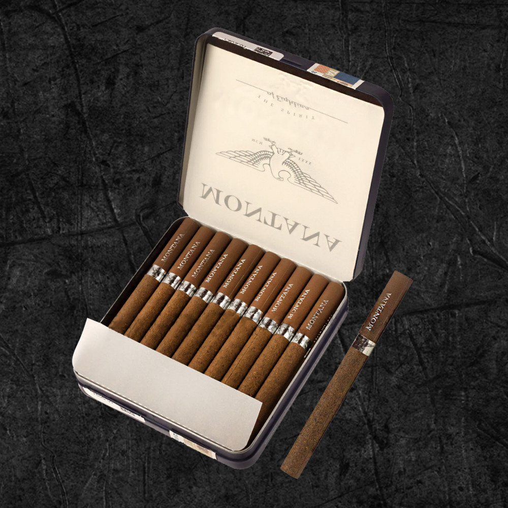 Эстетика презентации: Металлический портсигар подчеркивает премиальность продукта и сохраняет свежесть табака, отличая Montana Heritage от брендов с картонной упаковкой.